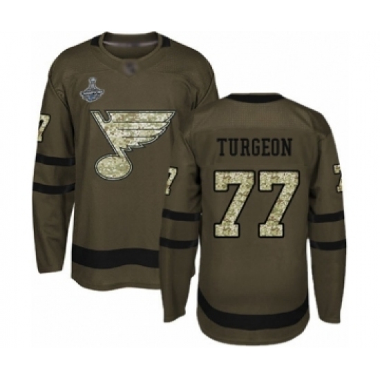 >Men's St. Louis Blues #77 Pierre Turgeon Authentic Green Salute to Service 2019 Stanley Cup Champions Hockey Jersey