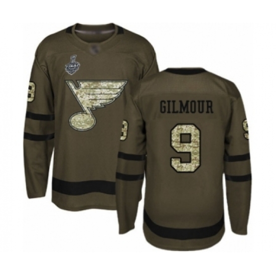 >Men's St. Louis Blues #9 Doug Gilmour Authentic Green Salute to Service 2019 Stanley Cup Final Bound Hockey Jersey