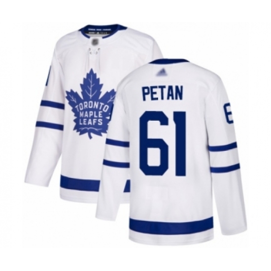 >Men's Toronto Maple Leafs #61 Nic Petan Authentic White Away Hockey Jersey