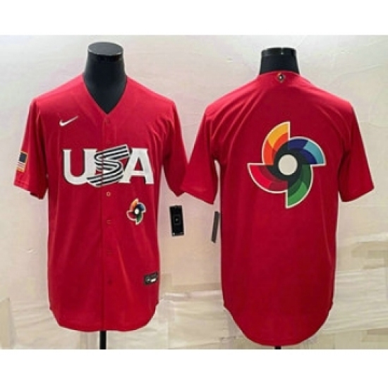 Men's USA Baseball 2023 Red World Big Logo Classic Stitched Jerseys