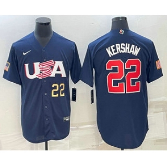 Men's USA Baseball #22 Clayton Kershaw Number 2023 Navy World Baseball Classic Stitched Jersey