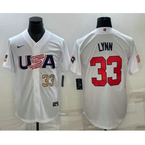 >Men's USA Baseball #33 Lance Lynn Number 2023 White World Baseball Classic Stitched Jerseys
