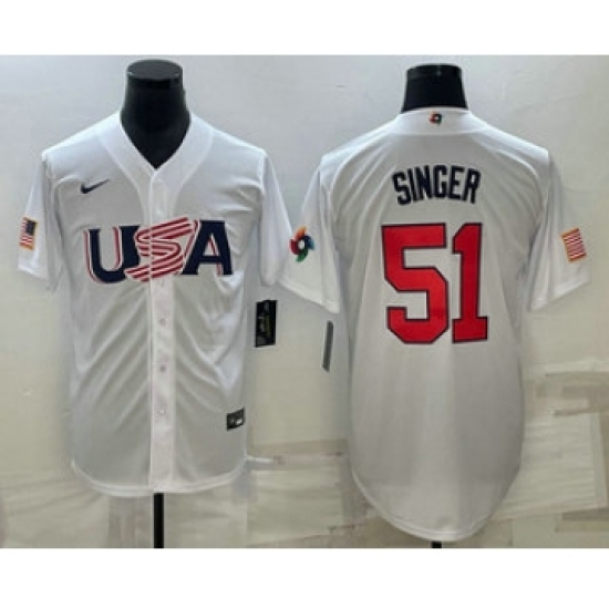 Men's USA Baseball #51 Brady Singer 2023 White World Baseball Classic Stitched Jerseys