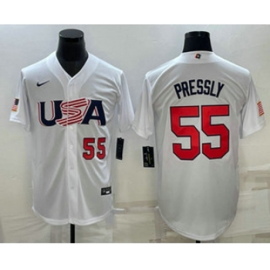 Mens USA Baseball #55 Ryan Pressly Number 2023 White World Baseball Classic Stitched Jersey