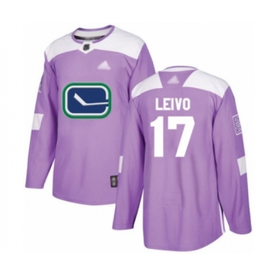 >Men's Vancouver Canucks #17 Josh Leivo Authentic Purple Fights Cancer Practice Hockey Jersey
