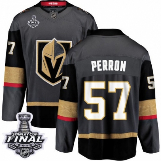 Men's Vegas Golden Knights #57 David Perron Authentic Black Home Fanatics Branded Breakaway 2018 Stanley Cup Final NHL Jersey