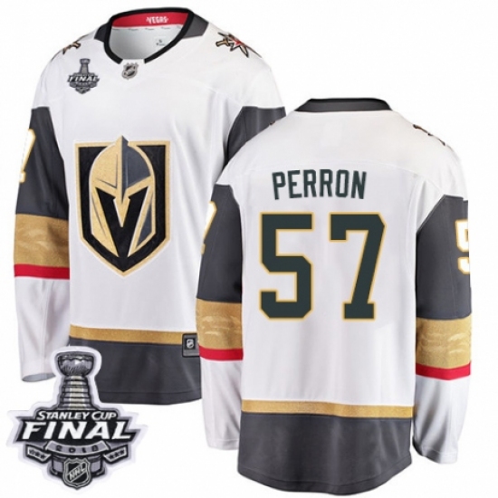 Men's Vegas Golden Knights #57 David Perron Authentic White Away Fanatics Branded Breakaway 2018 Stanley Cup Final NHL Jersey