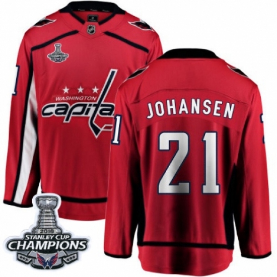>Men's Washington Capitals #21 Lucas Johansen Fanatics Branded Red Home Breakaway 2018 Stanley Cup Final Champions NHL Jersey