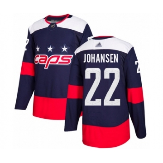 >Men's Washington Capitals #22 Lucas Johansen Authentic Navy Blue 2018 Stadium Series Hockey Jersey