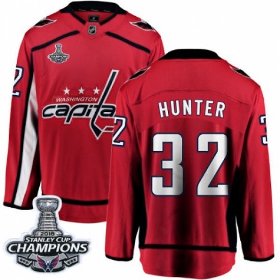 Men's Washington Capitals #32 Dale Hunter Fanatics Branded Red Home Breakaway 2018 Stanley Cup Final Champions NHL Jersey