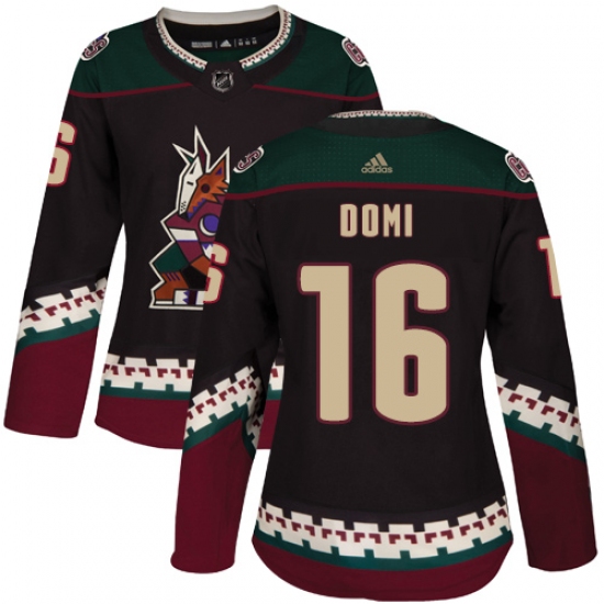>Women's Adidas Arizona Coyotes #16 Max Domi Authentic Black Alternate NHL Jersey