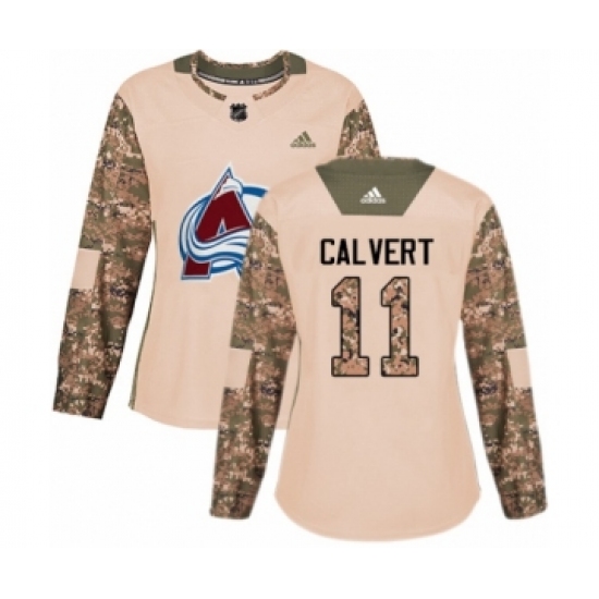 >Women's Adidas Colorado Avalanche #11 Matt Calvert Authentic Camo Veterans Day Practice NHL Jersey