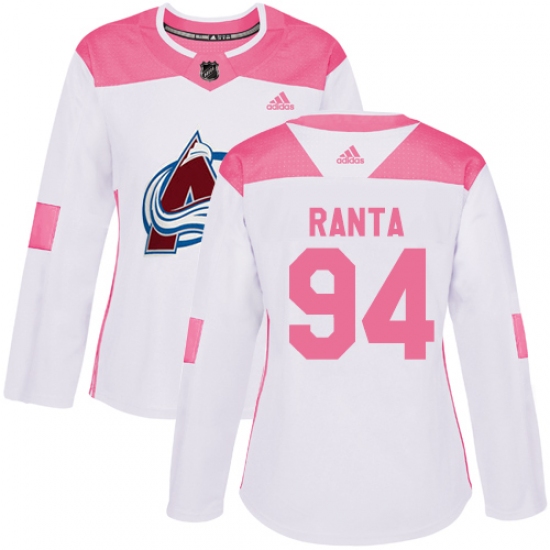 Women's Adidas Colorado Avalanche #94 Sampo Ranta Authentic White Pink Fashion NHL Jersey