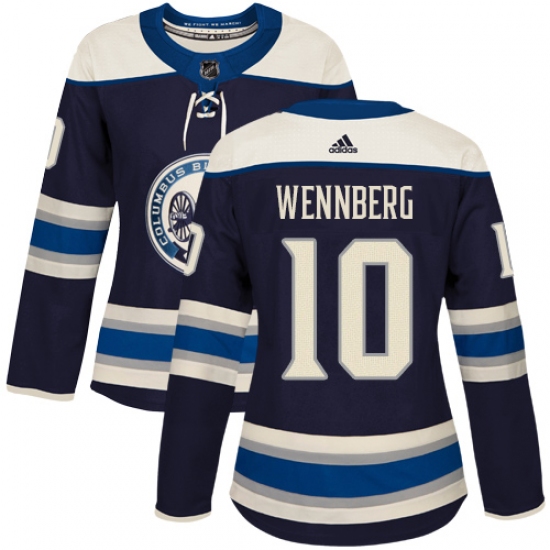 Women's Adidas Columbus Blue Jackets #10 Alexander Wennberg Authentic Navy Blue Alternate NHL Jersey
