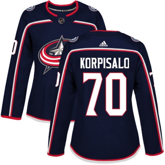 Women's Adidas Columbus Blue Jackets #70 Joonas Korpisalo Authentic Navy Blue Home NHL Jersey
