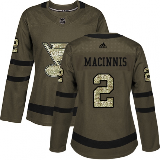 Home>NHL>St. Louis Blues>Al Macinnis>Women's Adidas St. Louis Blues #2 Al Macinnis Authentic Green Salute to Service NHL Jersey
