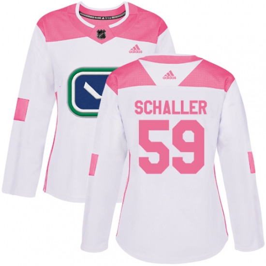 Women's Adidas Vancouver Canucks #59 Tim Schaller Authentic White Pink Fashion NHL Jersey