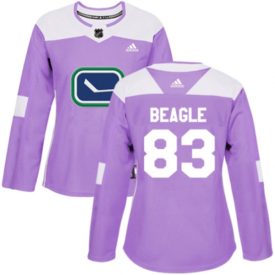 Women's Adidas Vancouver Canucks #83 Jay Beagle Authentic Purple Fights Cancer Practice NHL Jersey