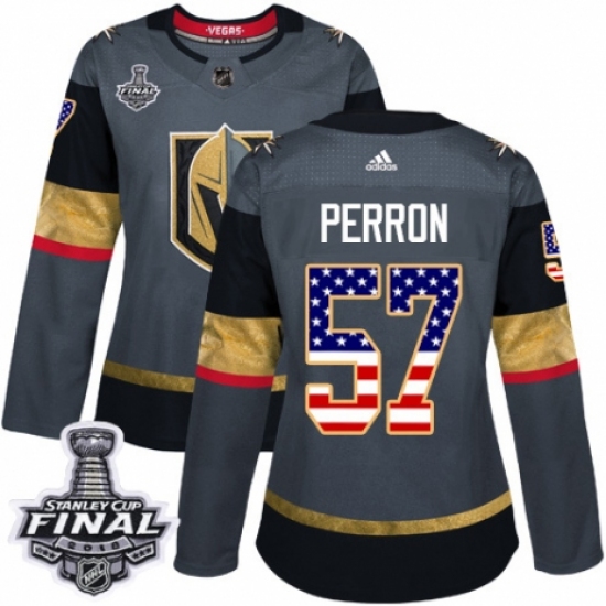 Women's Adidas Vegas Golden Knights #57 David Perron Authentic Gray USA Flag Fashion 2018 Stanley Cup Final NHL Jersey