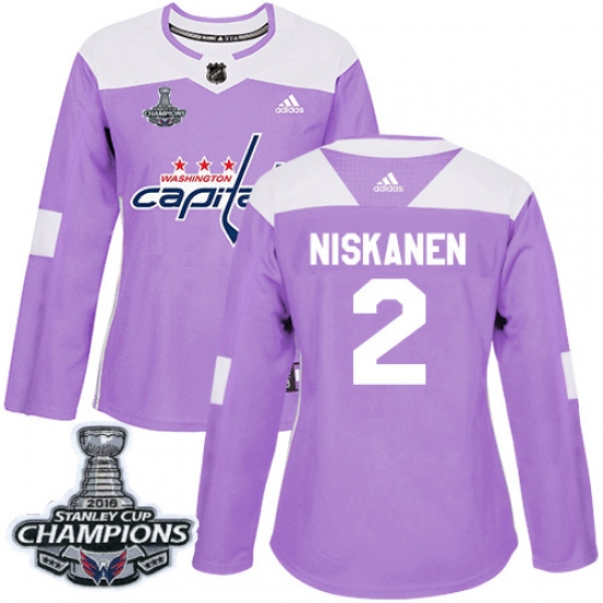 Women's Adidas Washington Capitals #2 Matt Niskanen Authentic Purple Fights Cancer Practice 2018 Stanley Cup Final Champions NHL Jersey