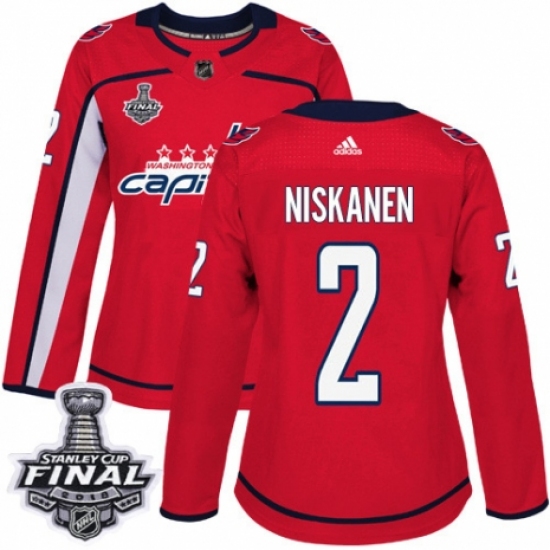 Women's Adidas Washington Capitals #2 Matt Niskanen Authentic Red Home 2018 Stanley Cup Final NHL Jersey