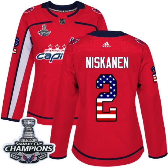 Women's Adidas Washington Capitals #2 Matt Niskanen Authentic Red USA Flag Fashion NHL Jersey