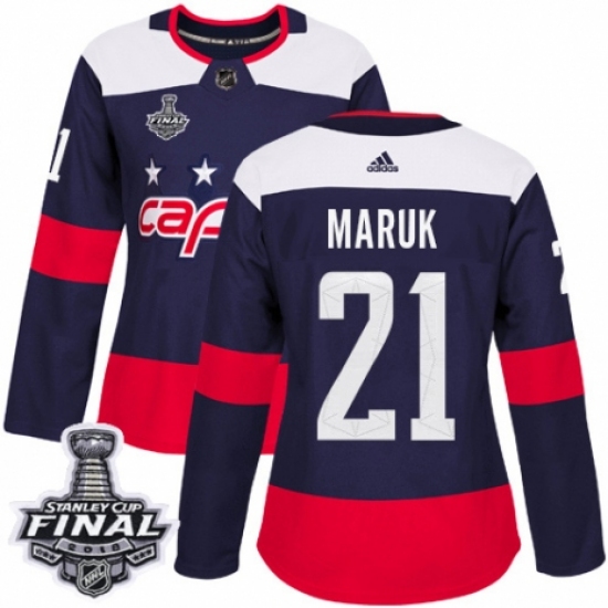 Women's Adidas Washington Capitals #21 Dennis Maruk Authentic Navy Blue 2018 Stadium Series 2018 Stanley Cup Final NHL Jersey
