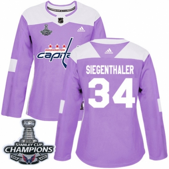 >Women's Adidas Washington Capitals #34 Jonas Siegenthaler Authentic Purple Fights Cancer Practice 2018 Stanley Cup Final Champions NHL Jersey
