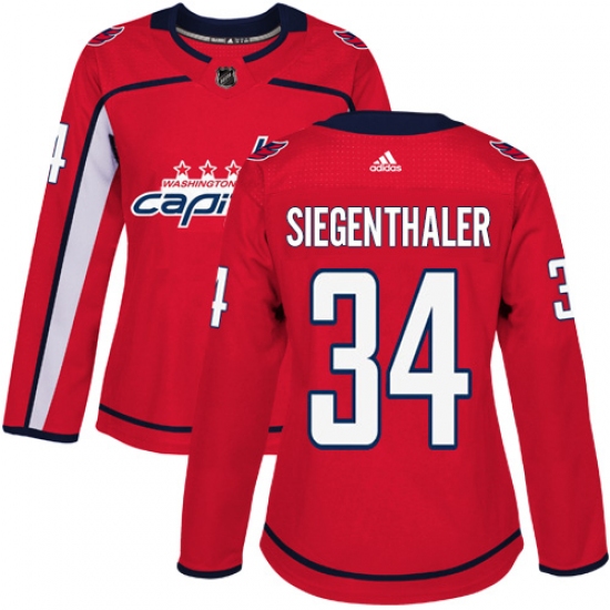 Home>NHL>Washington Capitals>Jonas Siegenthaler>Women's Adidas Washington Capitals #34 Jonas Siegenthaler Authentic Red Home NHL Jersey