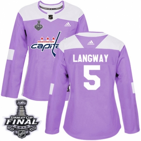 Women's Adidas Washington Capitals #5 Rod Langway Authentic Purple Fights Cancer Practice 2018 Stanley Cup Final NHL Jersey