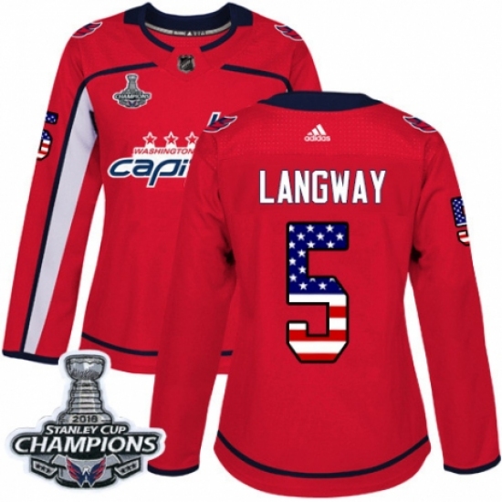 Women's Adidas Washington Capitals #5 Rod Langway Authentic Red USA Flag Fashion 2018 Stanley Cup Final Champions NHL Jersey