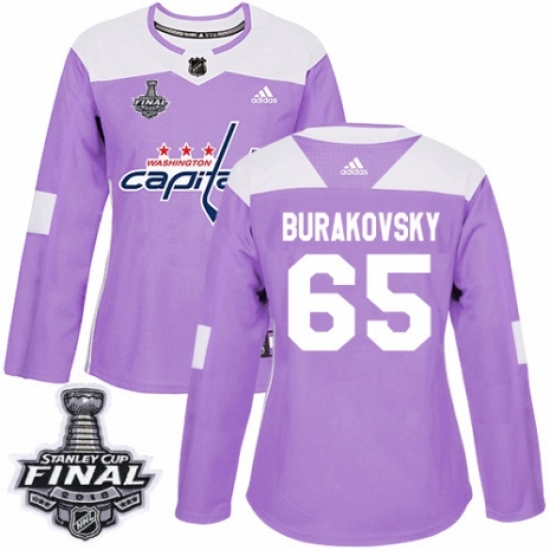 >Women's Adidas Washington Capitals #65 Andre Burakovsky Authentic Purple Fights Cancer Practice 2018 Stanley Cup Final NHL Jersey