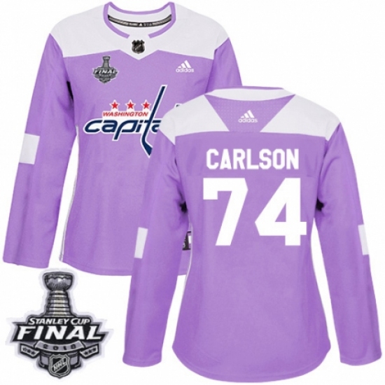 Women's Adidas Washington Capitals #74 John Carlson Authentic Purple Fights Cancer Practice 2018 Stanley Cup Final NHL Jersey