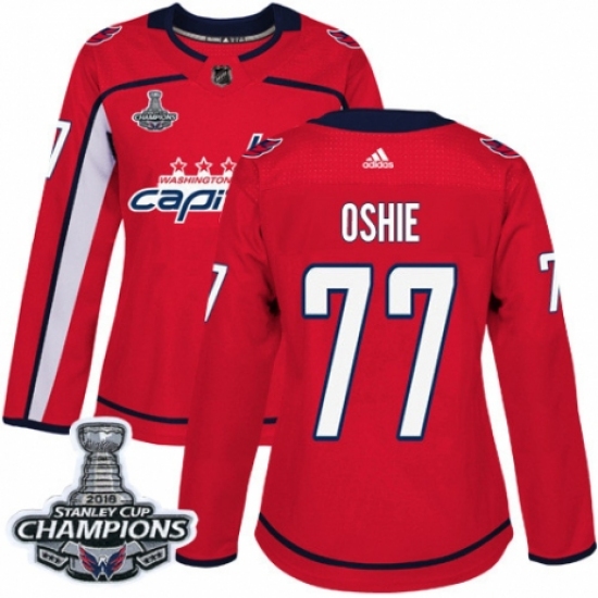 Women's Adidas Washington Capitals #77 T.J. Oshie Authentic Red Home 2018 Stanley Cup Final Champions NHL Jersey