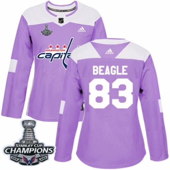 >Women's Adidas Washington Capitals #83 Jay Beagle Authentic Purple Fights Cancer Practice 2018 Stanley Cup Final Champions NHL Jersey
