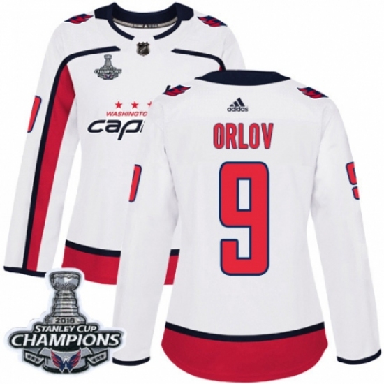 Women's Adidas Washington Capitals #9 Dmitry Orlov Authentic White Away 2018 Stanley Cup Final Champions NHL Jersey