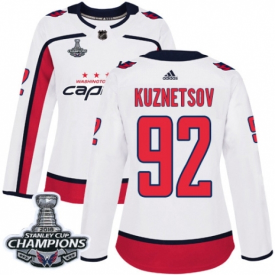 Women's Adidas Washington Capitals #92 Evgeny Kuznetsov Authentic White Away 2018 Stanley Cup Final Champions NHL Jersey
