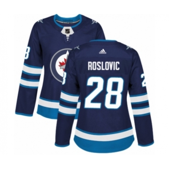Women's Adidas Winnipeg Jets #28 Jack Roslovic Authentic Navy Blue Home NHL Jersey