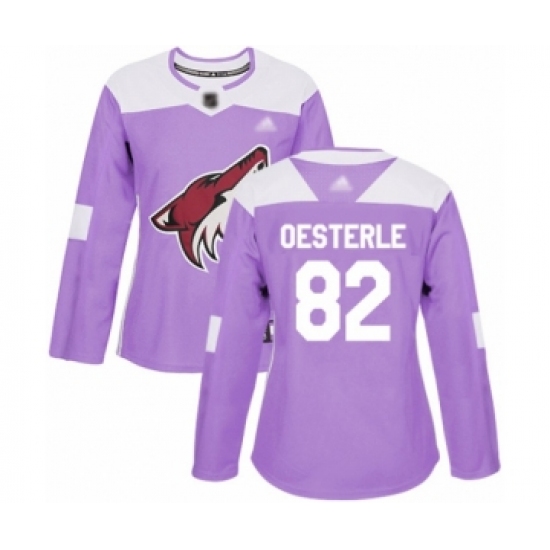 >Women's Arizona Coyotes #82 Jordan Oesterle Authentic Purple Fights Cancer Practice Hockey Jersey