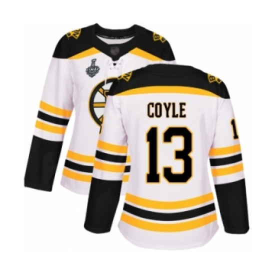 >Women's Boston Bruins #13 Charlie Coyle Authentic White Away 2019 Stanley Cup Final Bound Hockey Jersey