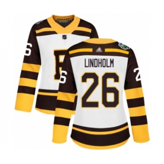 >Women's Boston Bruins #26 Par Lindholm Authentic White 2019 Winter Classic Hockey Jersey