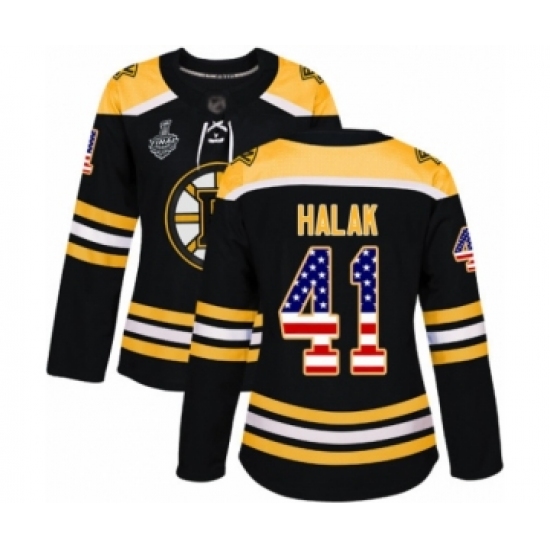 Women's Boston Bruins #41 Jaroslav Halak Authentic Black USA Flag Fashion 2019 Stanley Cup Final Bound Hockey Jersey