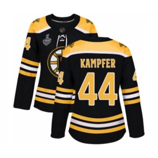>Women's Boston Bruins #44 Steven Kampfer Authentic Black Home 2019 Stanley Cup Final Bound Hockey Jersey