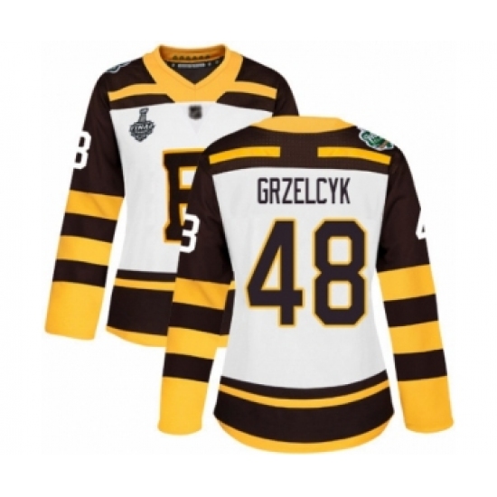 >Women's Boston Bruins #48 Matt Grzelcyk Authentic White Winter Classic 2019 Stanley Cup Final Bound Hockey Jersey