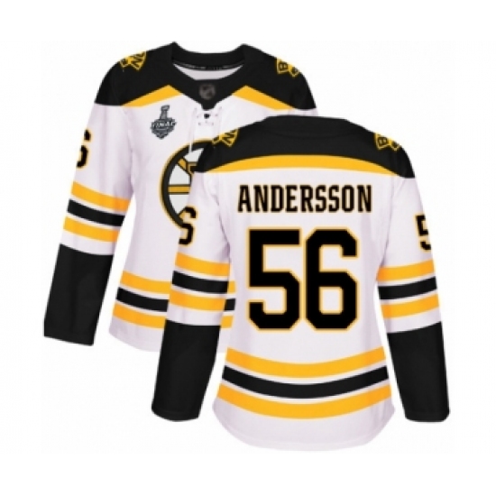 Women's Boston Bruins #56 Axel Andersson Authentic White Away 2019 Stanley Cup Final Bound Hockey Jersey