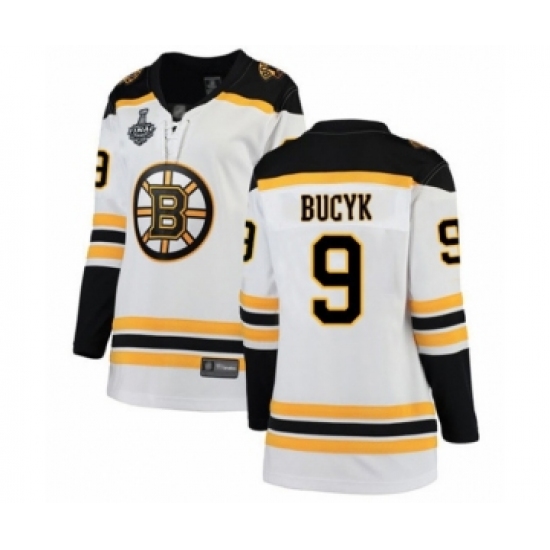 Women's Boston Bruins #9 Johnny Bucyk Authentic White Away Fanatics Branded Breakaway 2019 Stanley Cup Final Bound Hockey Jersey