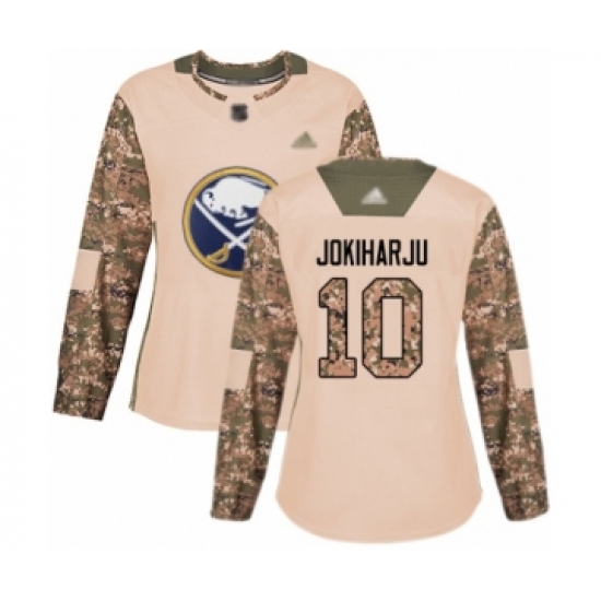 >Women's Buffalo Sabres #10 Henri Jokiharju Authentic Camo Veterans Day Practice Hockey Jersey