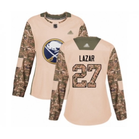 >Women's Buffalo Sabres #27 Curtis Lazar Authentic Camo Veterans Day Practice Hockey Jersey