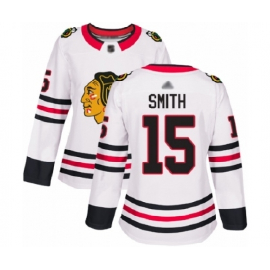 Women's Chicago Blackhawks #15 Zack Smith Authentic White Away Hockey Jersey