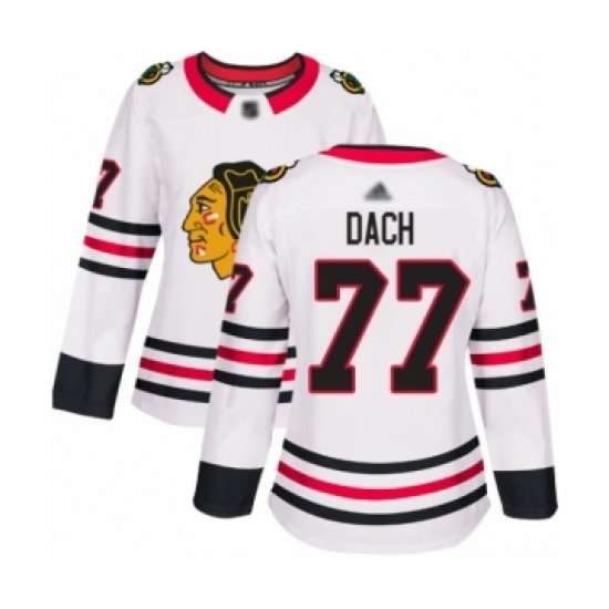 Women's Chicago Blackhawks #77 Kirby Dach Authentic White Away Hockey Jersey